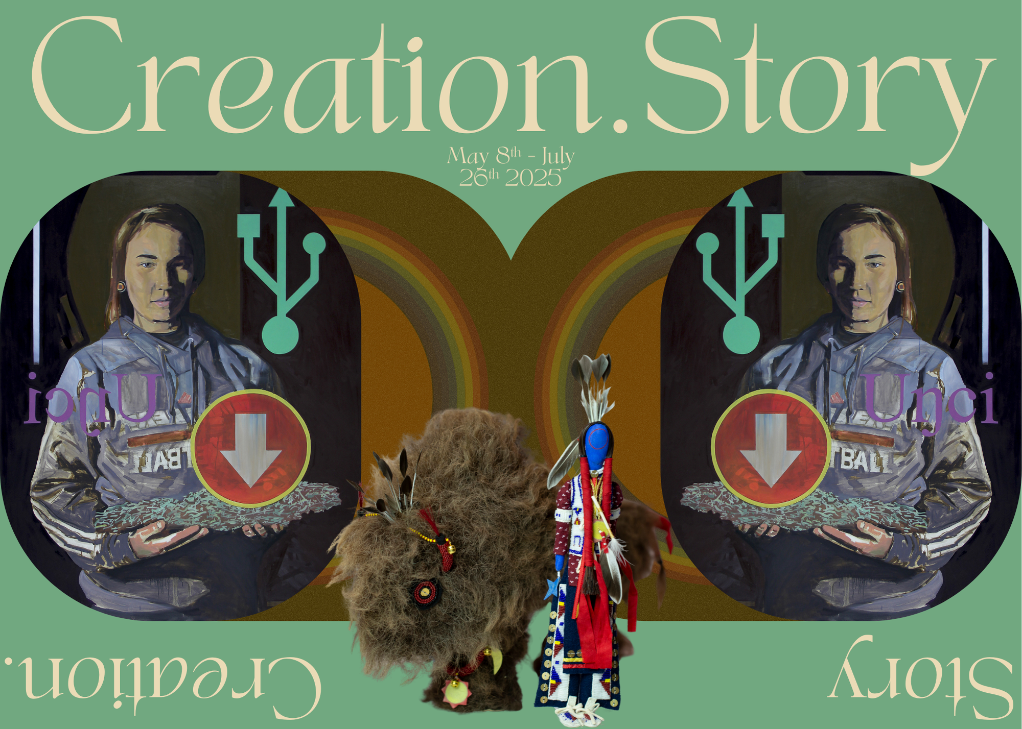 Creation.Story is an art exhibition that centers on the significance of creative expressions and oral traditions amongst Očhéthi Šakówiŋ cultures. Multiple artists representing their Očhéthi Šakówiŋ heritage provide visual artworks and creative concepts to engage audiences with the expansive creation narratives that underlie Očhéthi Šakówiŋ identity and values.