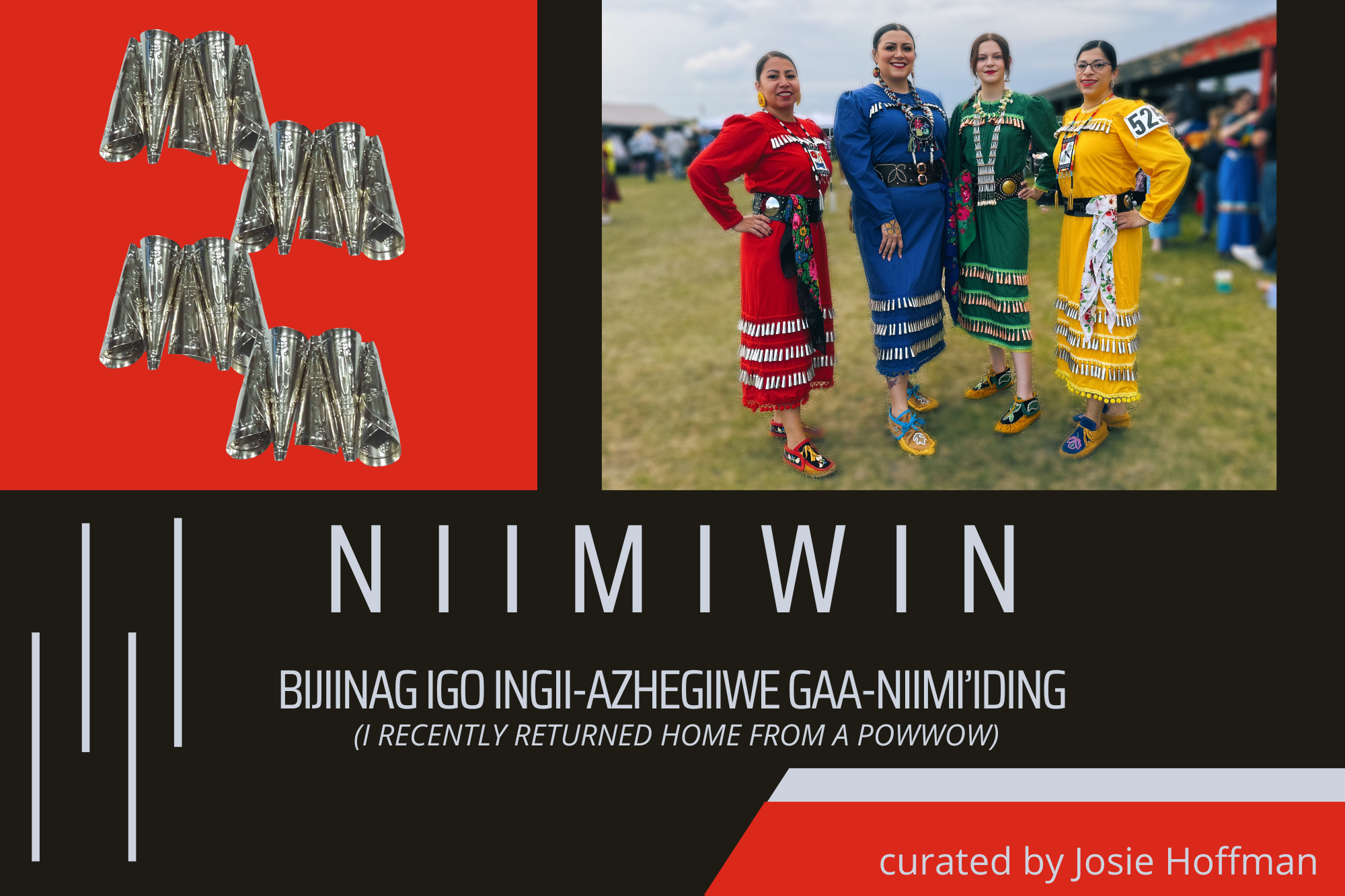 Niimiwin: Bijiinag igo ingii-azhegiiwe gaa-niimi’iding is the culmination of Josie’s curatorial fellowship with Emerging Curators Institute, reflecting her commitment to amplifying diverse Indigenous voices and narratives in the art world.